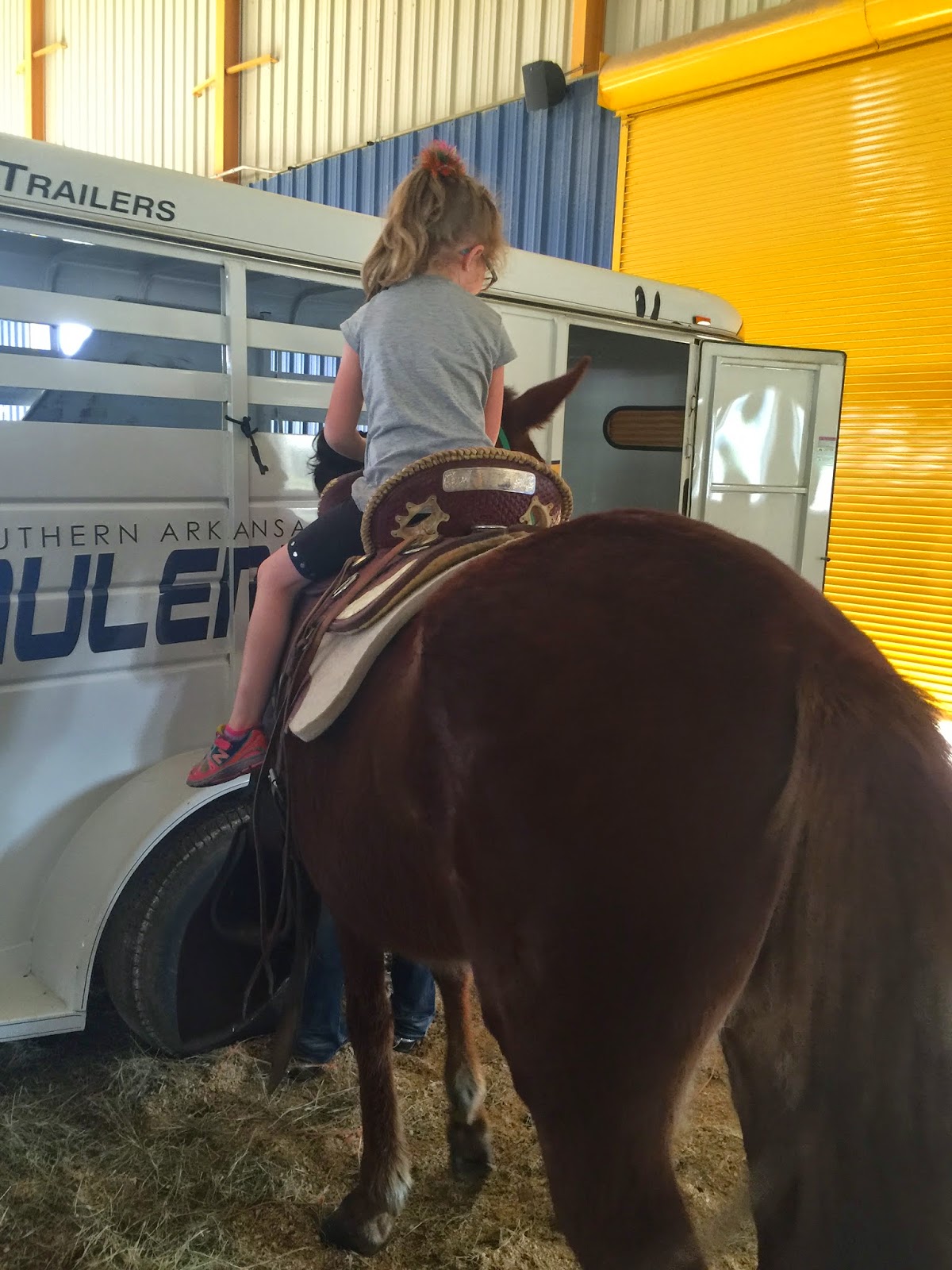 This has been quite a monumental week in Shelby's life! She got to be the Littlest Mulerider with 2 of her friends from school as well. SAU offers as one of the Continuing Education programs, "The Littlest Mulerider," where the kids can get up close and personal with Molly Ann (the mule) and Payton, the Mulerider. Shelby learned about how Payton cares for Molly and all that she has to do to keep her happy, healthy and well. She also got to learn about the saddle and the process Payton has to go through first before she can ride her. The highlight was getting to ride Molly Ann. It was sooo neat to be apart of this in her life! Seeing the PURE JOY on Shelby's face was enough to keep me going for years! She has her first riding lesson this week too w/ a very good coach and we can't wait to start this new journey as a rider!!